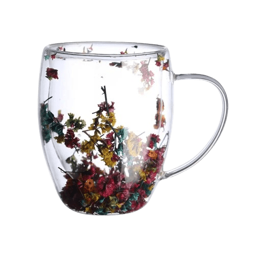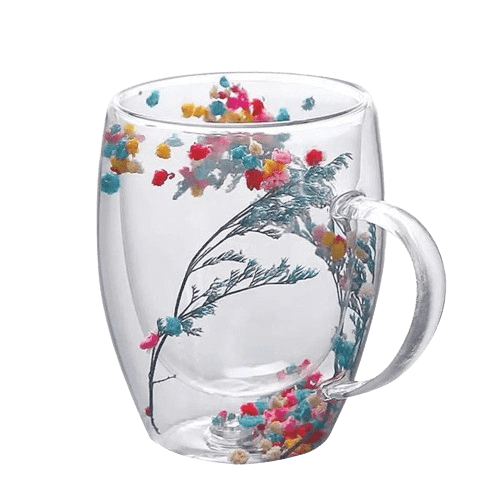 Med ekte tørkede blomster mellom to lag krystallklart borosilikatglass er hver kopp et unikt kunstverk. Nyt å se kaffen eller teen din sveve, mens dobbeltveggisoleringen holder drikken din varmere lenger. Vakker og funksjonell, perfekt for alle anledninger – en minneverdig gave eller en personlig skatt.