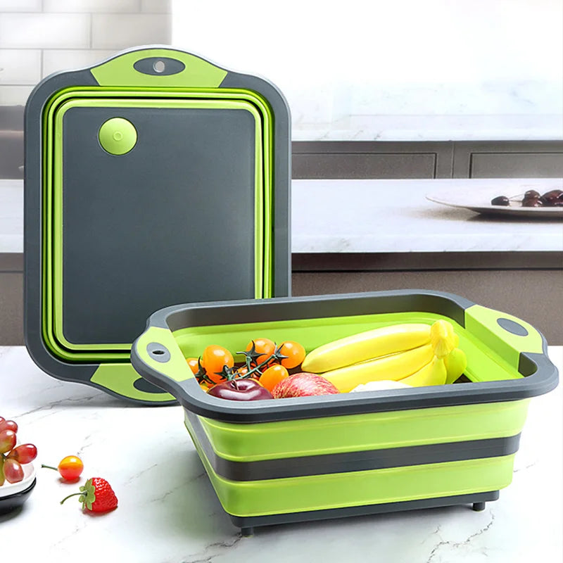 Har du lite plass på kjøkkenet? FlexiBoard er løsningen! Bruk den som skjærefjøl, oppvaskbalje, sil eller oppbevaringskurv. Perfekt for både hjemme og utendørs.