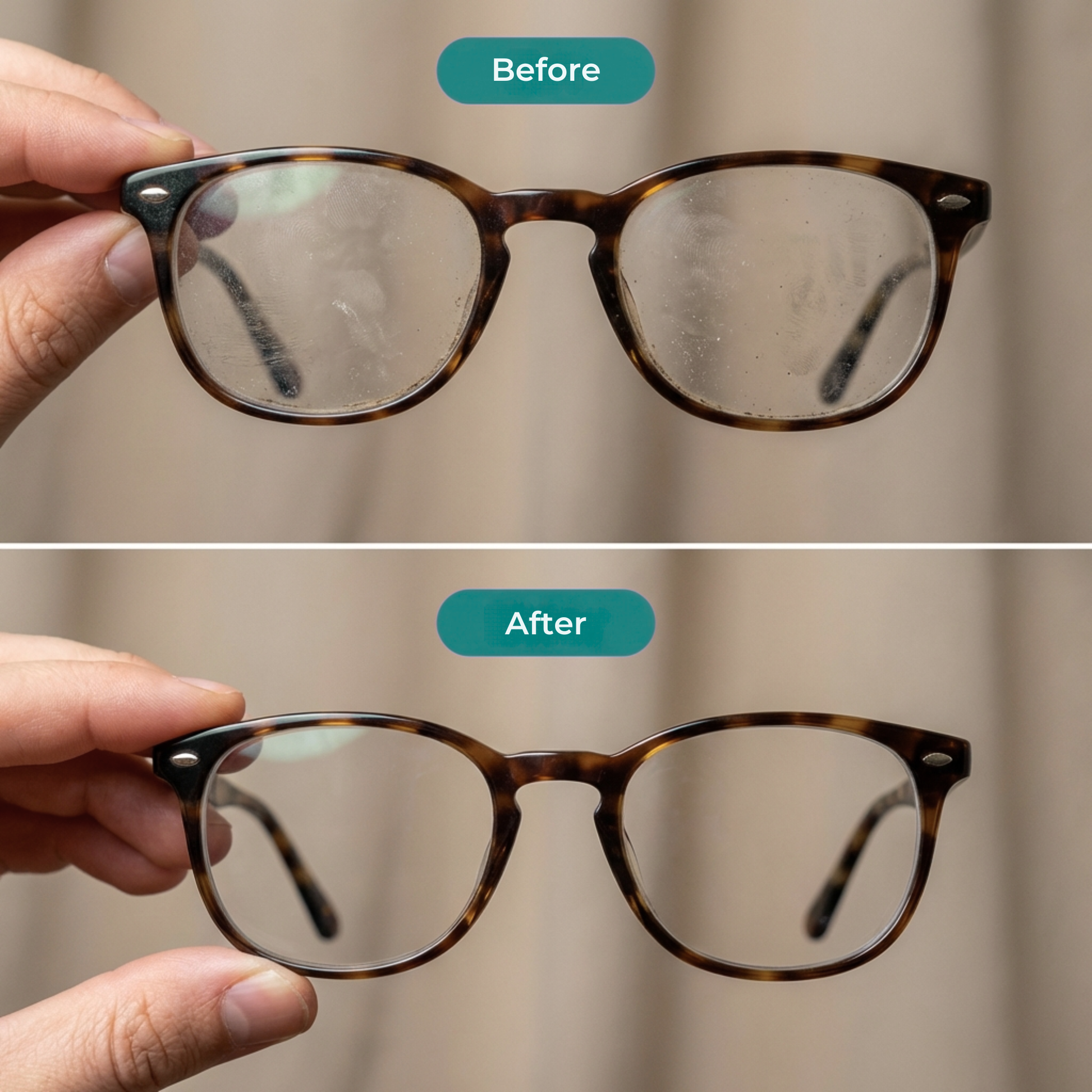Tired of constantly wiping your glasses, but they never really get clean? Microfiber cloths just push oil and grime around, leaving streaks and smudges. It's frustrating—and dirty lenses cause eye strain and headaches.