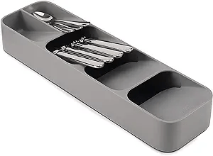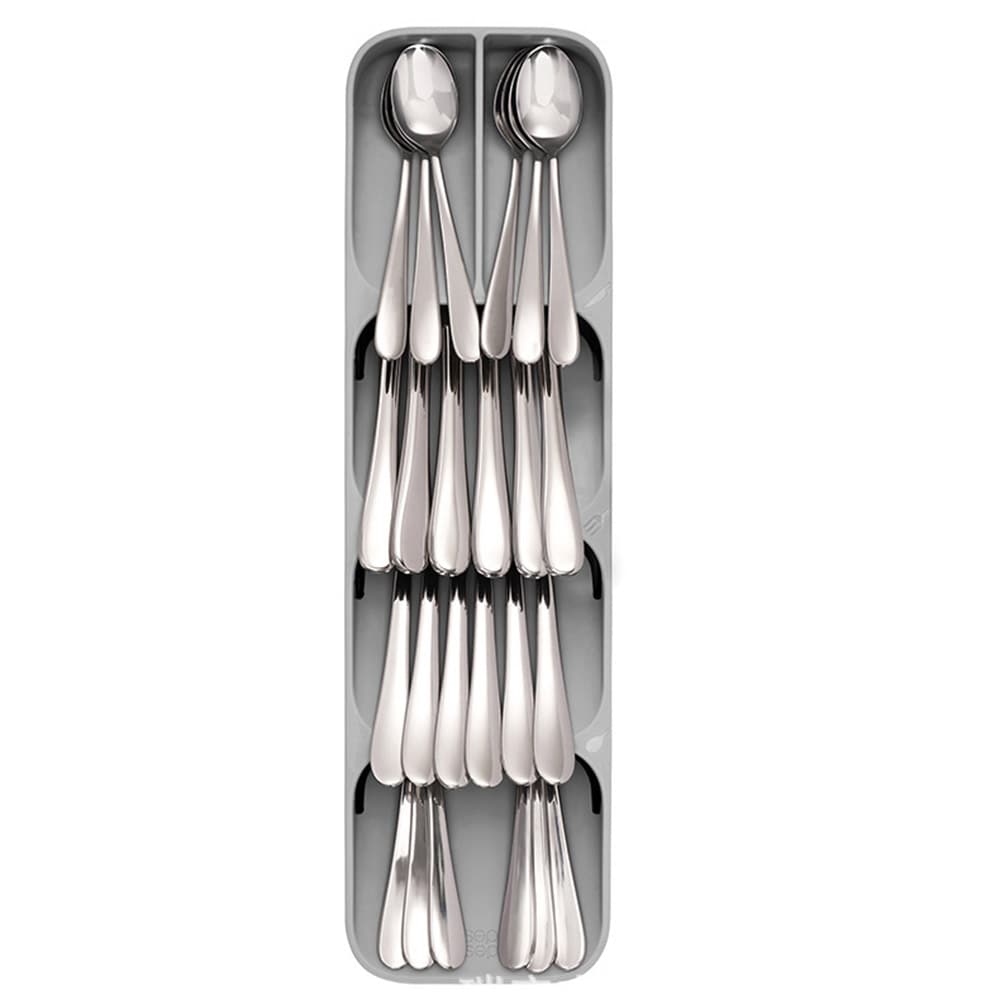 Med fem förvaringsfack gör denna unika lösning för besticksförvaring det enkelt att ordna och nå dina bestick, och förvandlar din röriga låda till en förebild för ordning och reda. Perfekt för alla kök, den ser till att dina bestick är prydligt ordnade och alltid nära till hands.